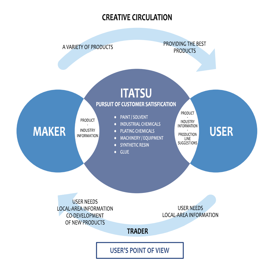 Itatsu (Thailand) Co., Ltd. has services that import, export, and distribution services for paints, reagents, plating chemicals, solvents, and industrial products. Also, we have industrial machines, printing machines, painting machines, measuring instruments. We can supply many types of products in Thailand and those imported from Japan or other countries around the world. We have a local warehouse where temperature-controlled storage is available and warehouses that store goods such as paints, glues, plating solutions, chemicals, solvents, and others.